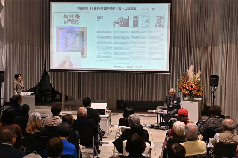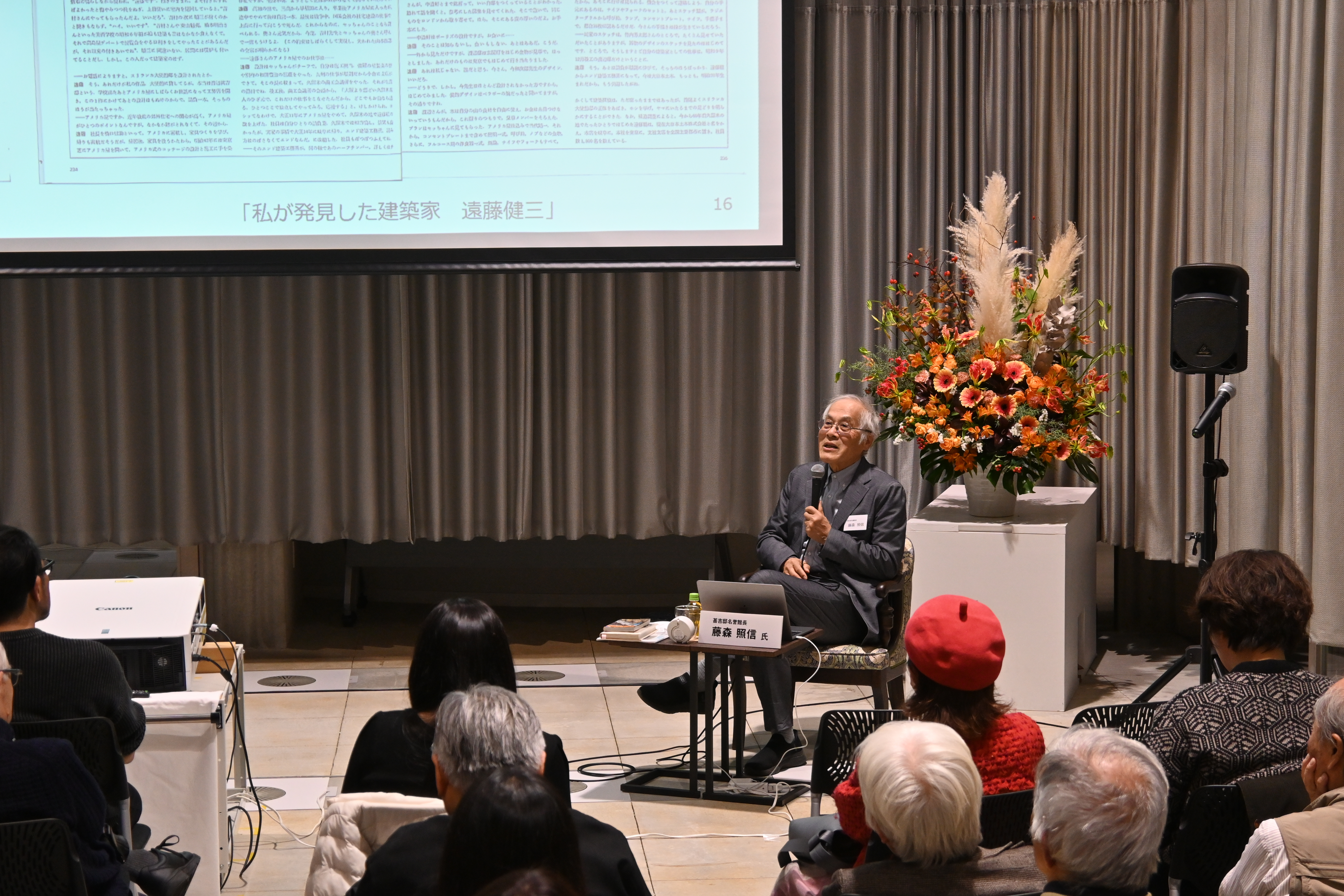 2025年11月22日に甚吉邸特別講演会「甚吉邸と建築探偵団」がICI STUDIO W-ANNEXで開催されました。Ⅰ部は「甚吉邸を知る」と題して甚吉邸紹介動画の放映、Ⅱ部は「甚吉邸と建築探偵団」と題して甚吉邸名誉館長の藤森照信氏と、元文化庁長官の堀勇良氏にご対談いただきました。